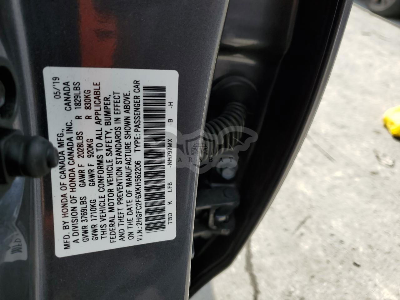 • VIN: 2HGFC2F6XKH562206