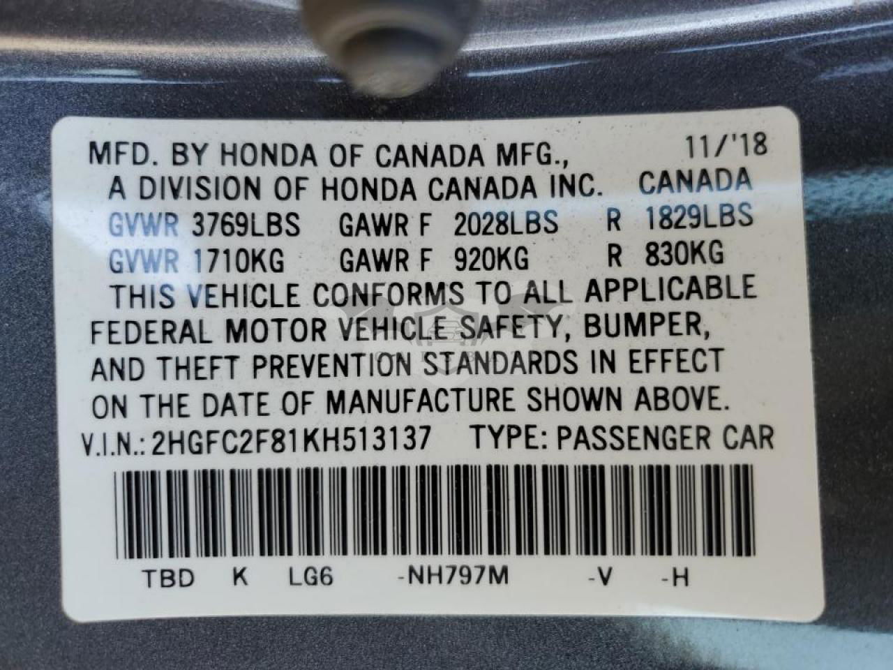 2HGFC2F81KH513137