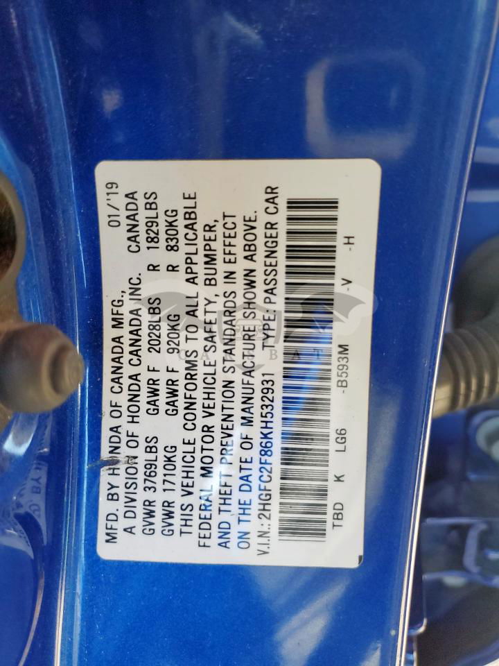 • VIN: 2HGFC2F86KH532931