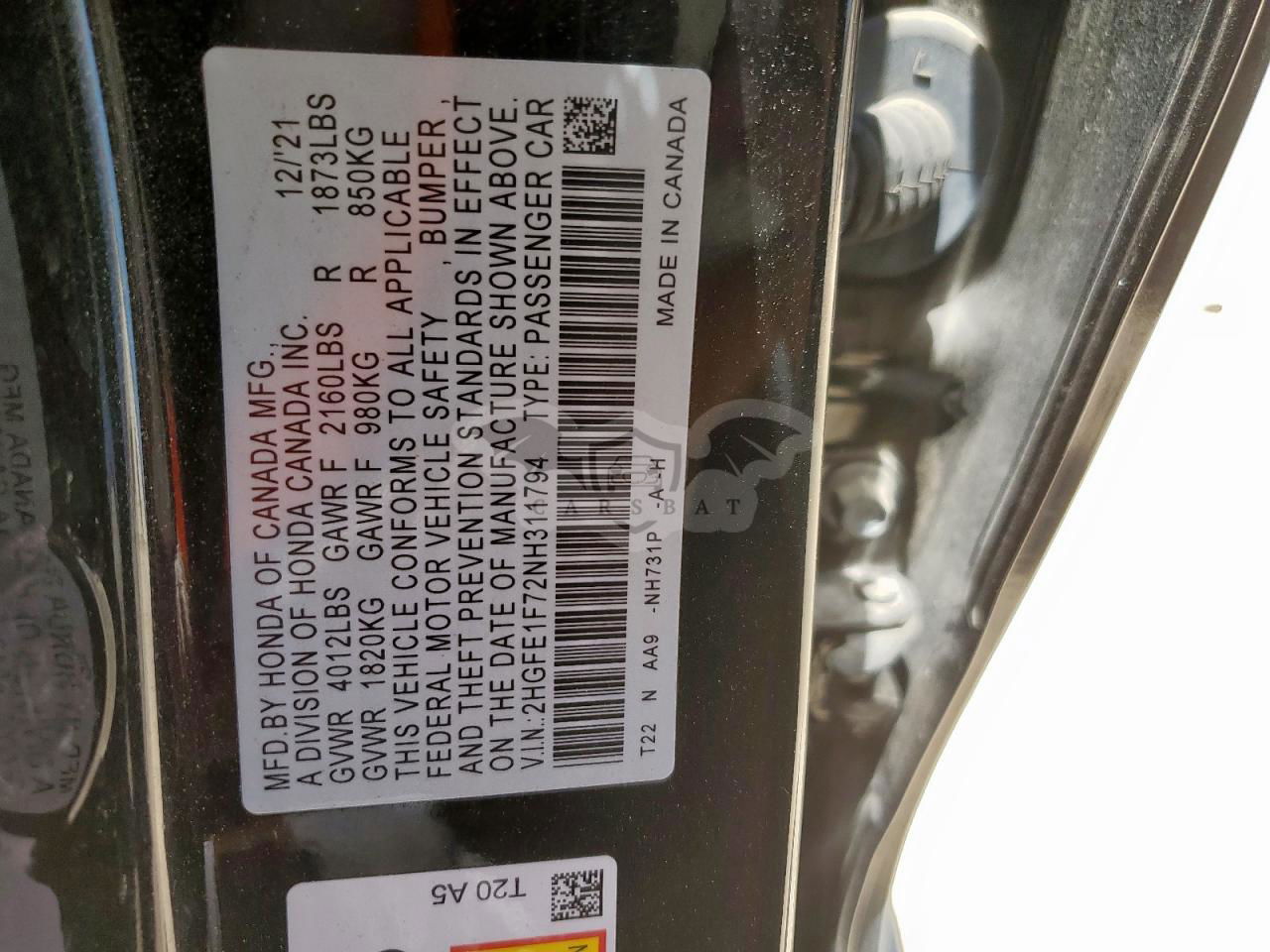 • VIN: 2HGFE1F72NH311794