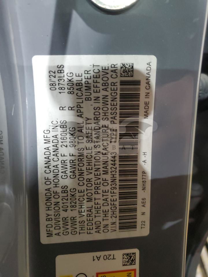 • VIN: 2HGFE1F93NH324443
