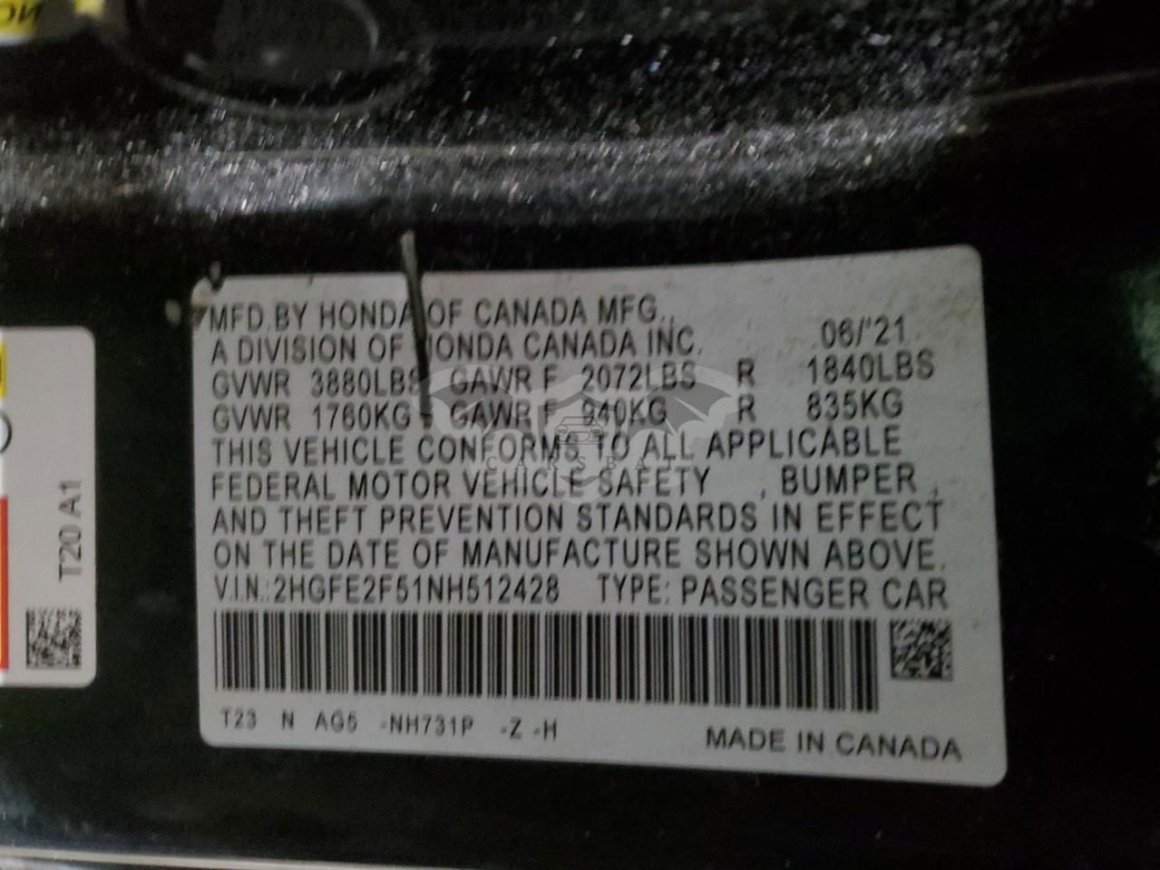 • VIN: 2HGFE2F51NH512428
