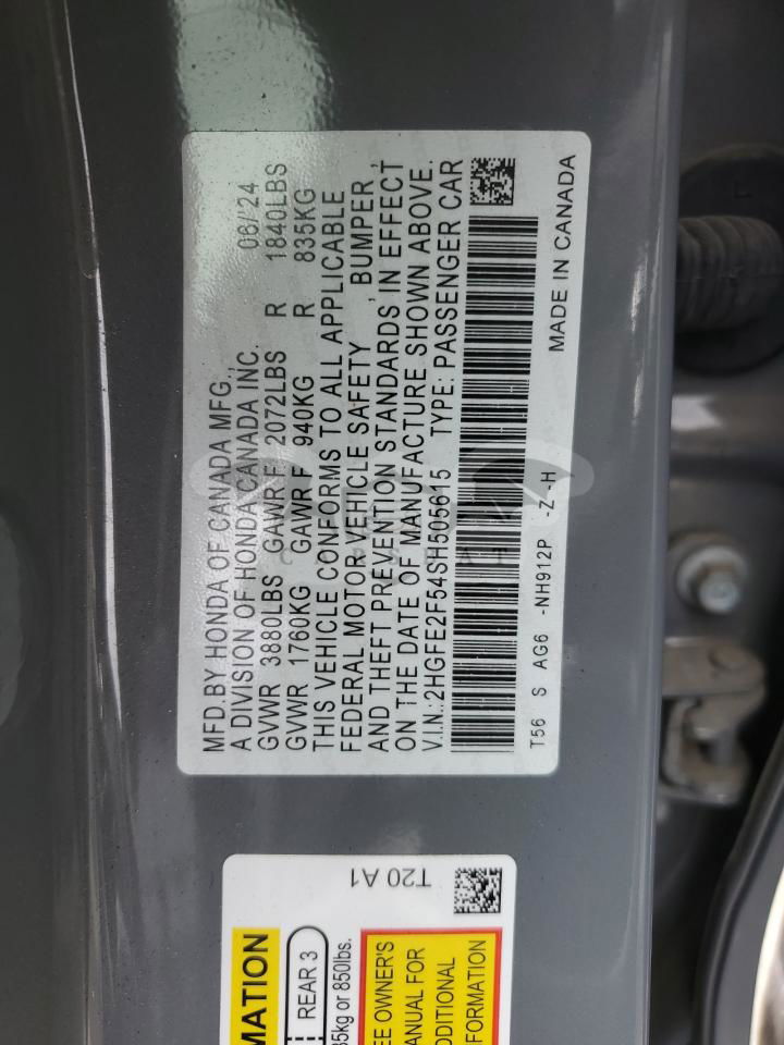 • VIN: 2HGFE2F54SH505615