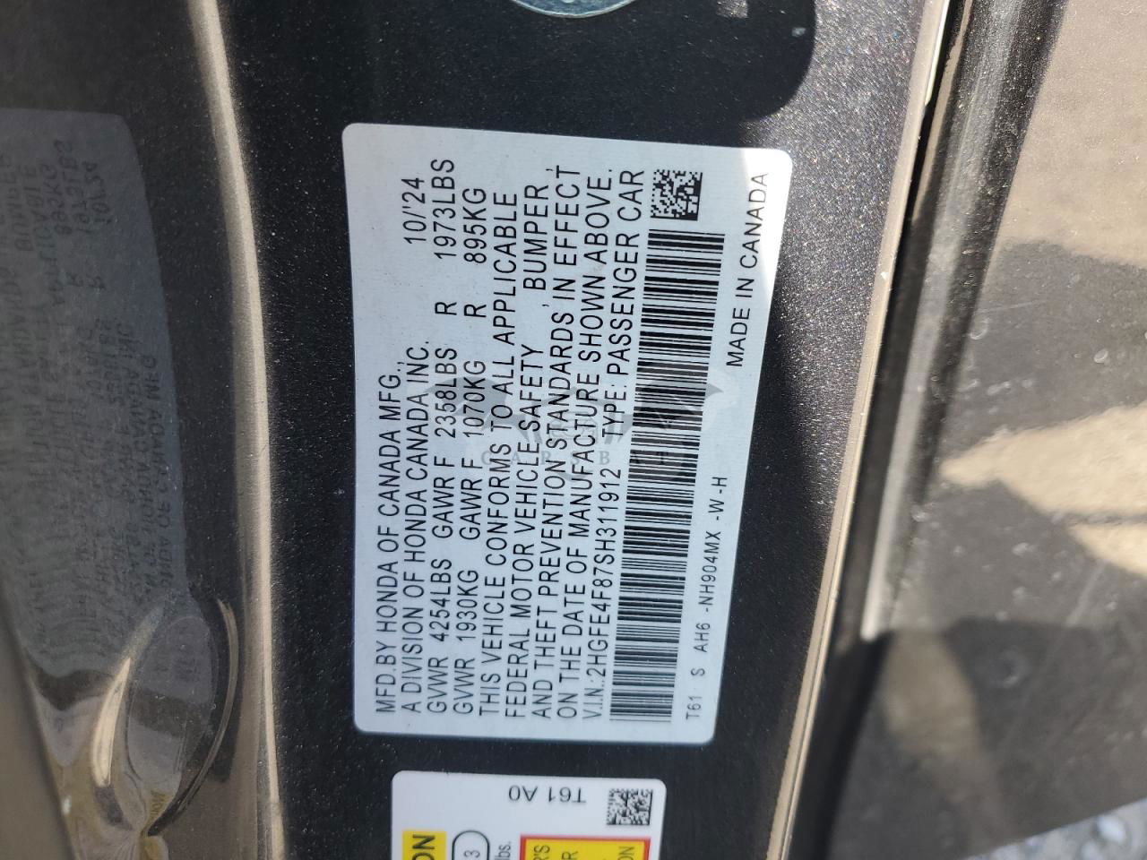• VIN: 2HGFE4F87SH311912