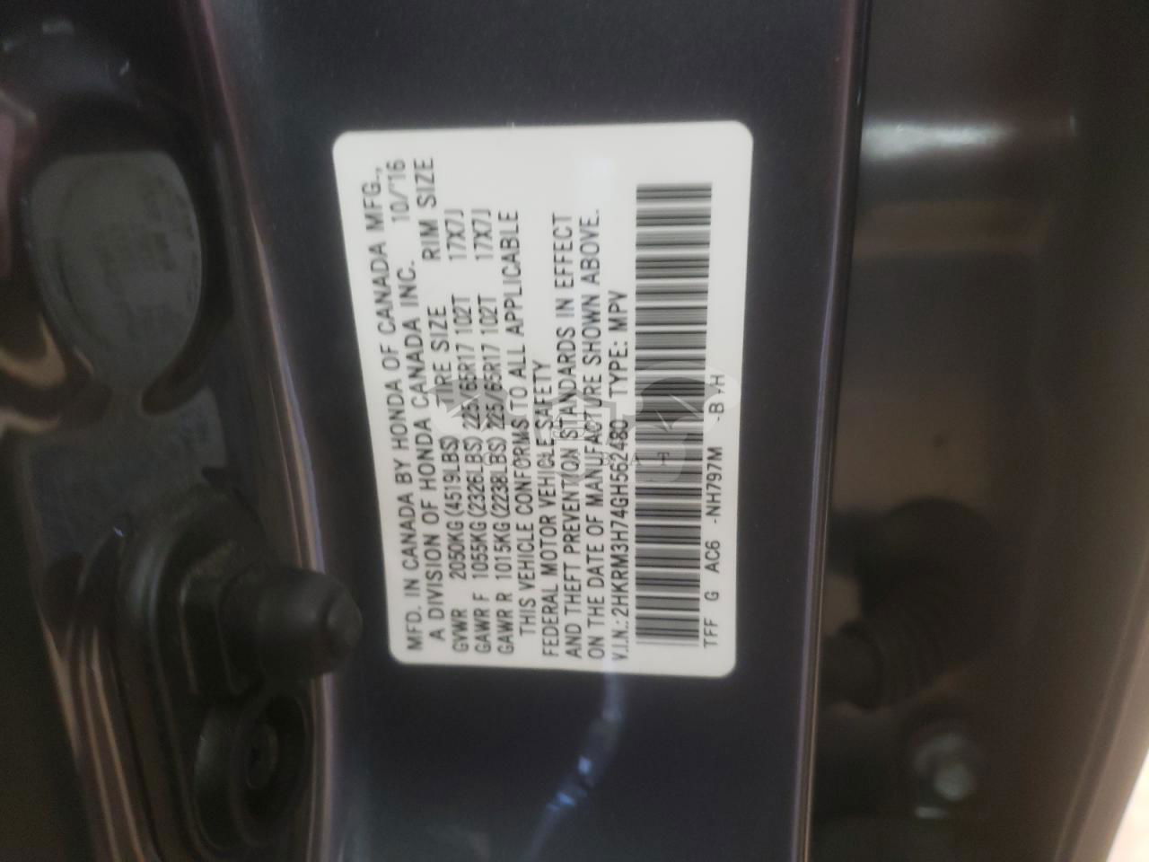 • VIN: 2HKRM3H74GH562480