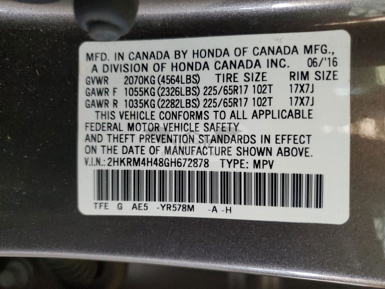• VIN: 2HKRM4H48GH672878