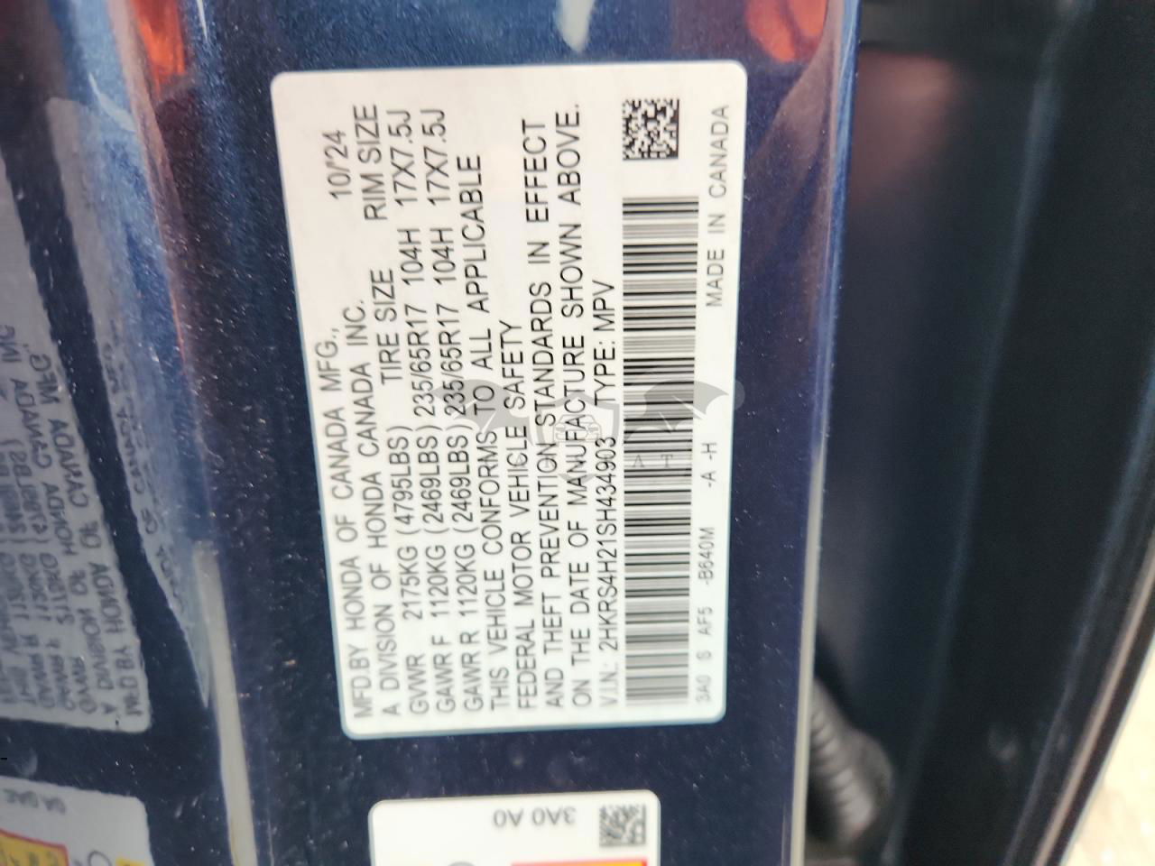 • VIN: 2HKRS4H21SH434903