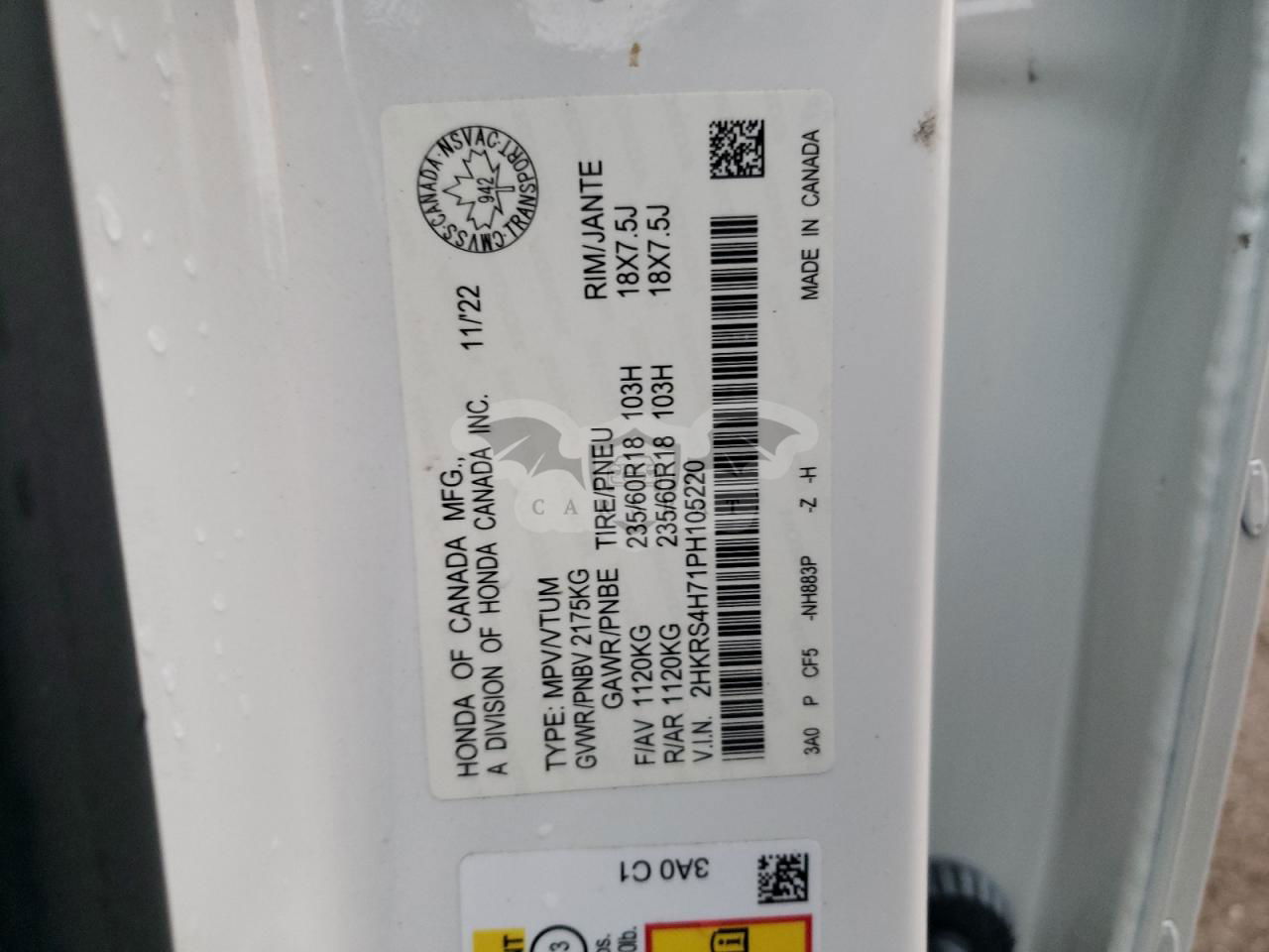 • VIN: 2HKRS4H71PH105220