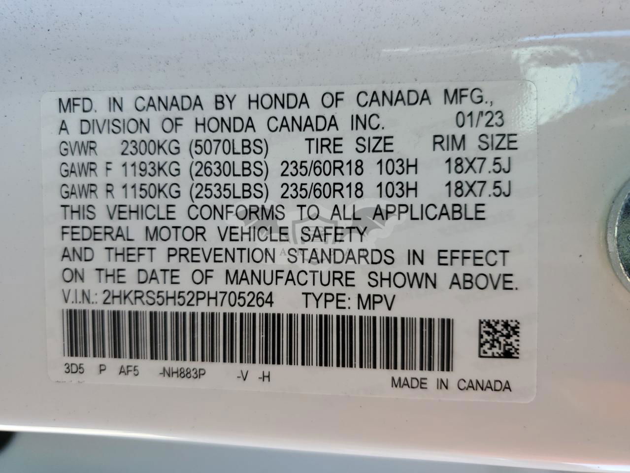 • VIN: 2HKRS5H52PH705264