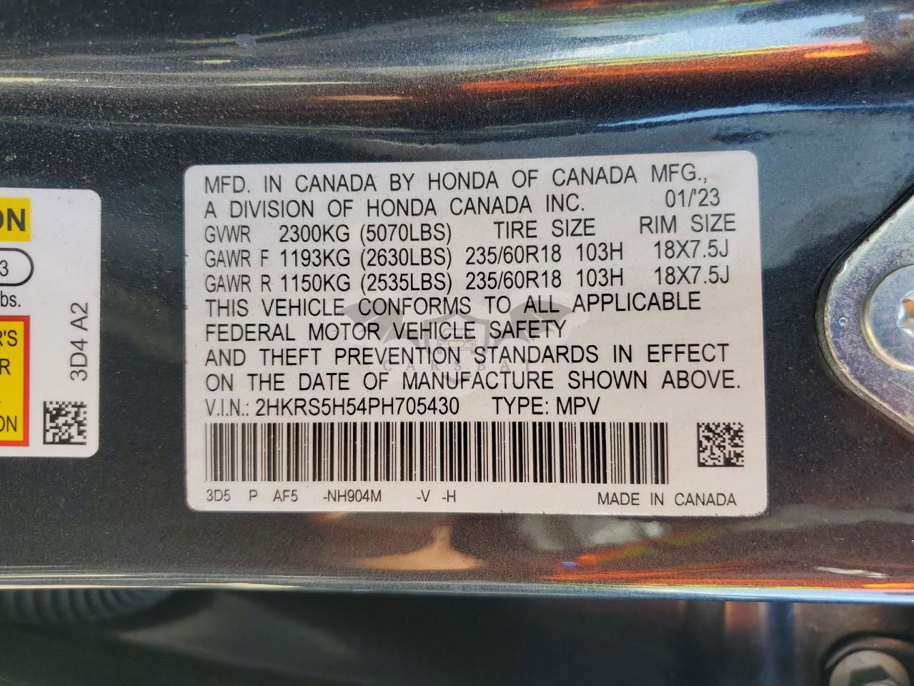 • VIN: 2HKRS5H54PH705430