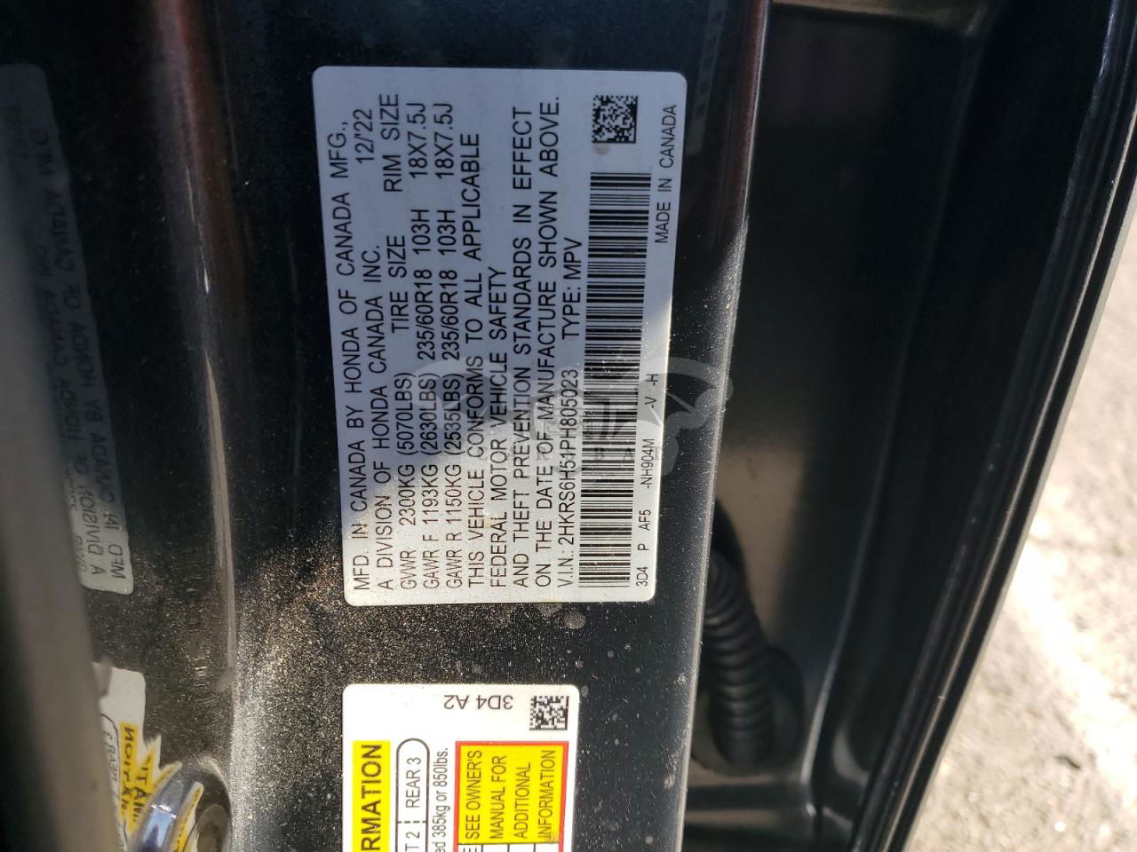 • VIN: 2HKRS6H51PH805023