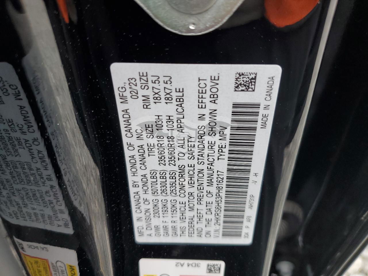 • VIN: 2HKRS6H53PH816217