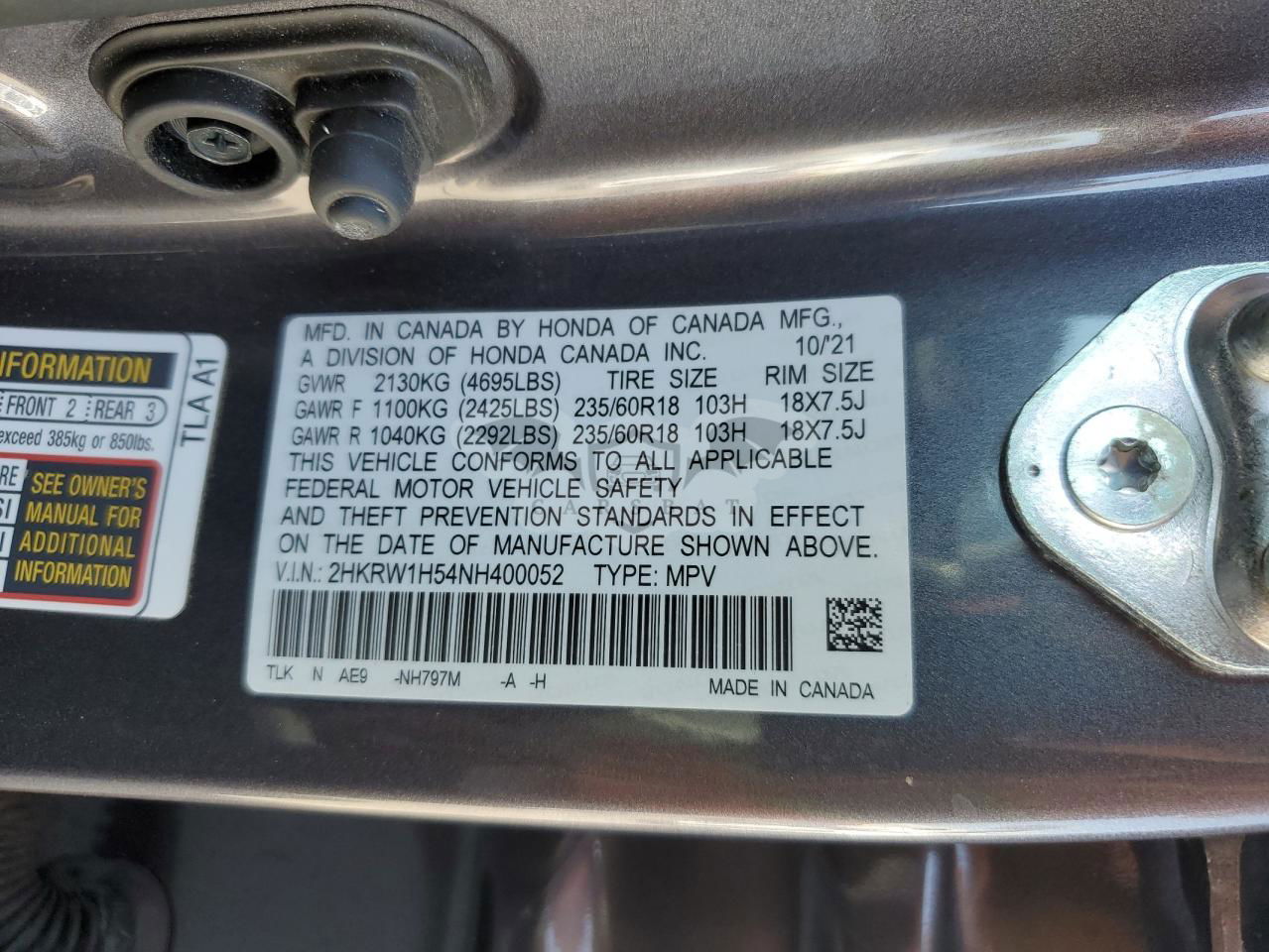 • VIN: 2HKRW1H54NH400052