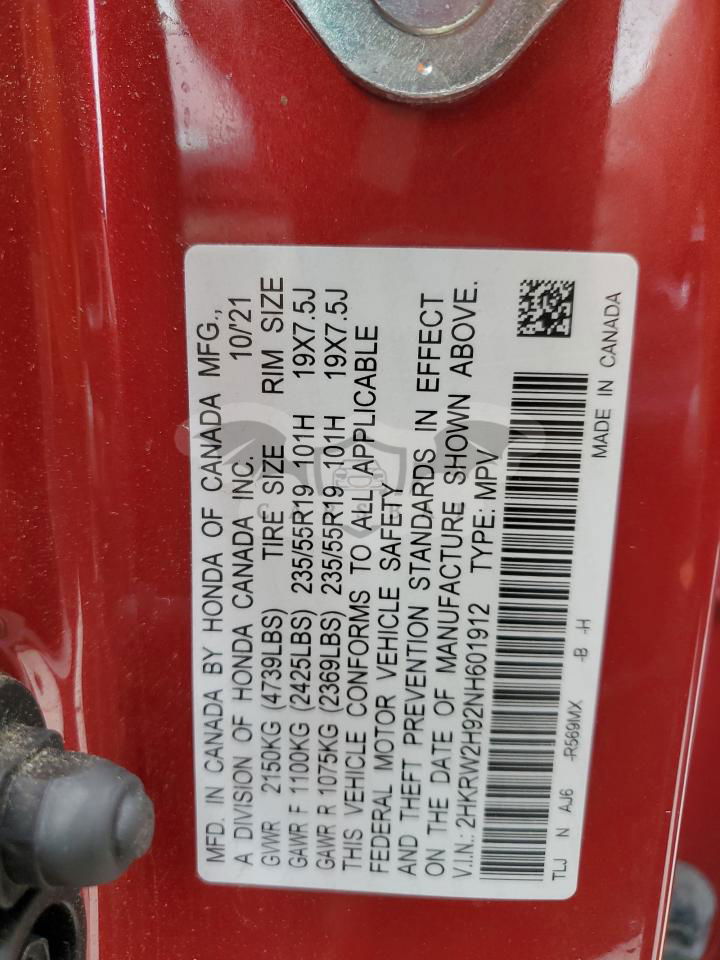 • VIN: 2HKRW2H92NH601912
