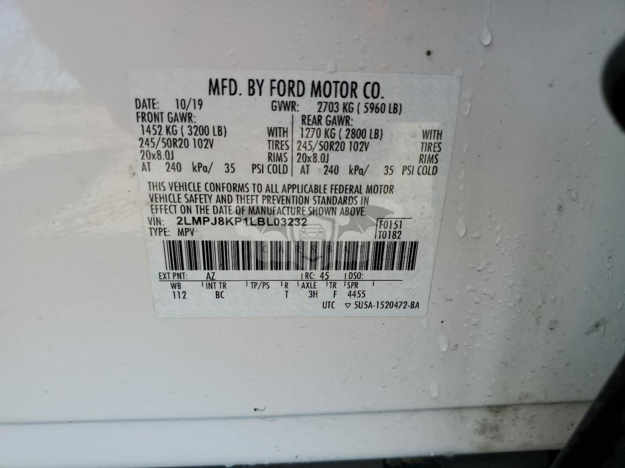 • VIN: 2LMPJ8KP1LBL03232