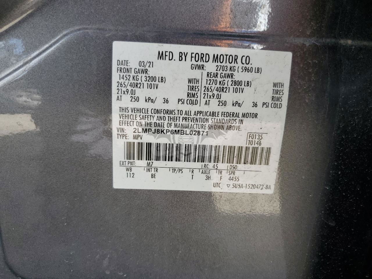• VIN: 2LMPJ8KP6MBL02871