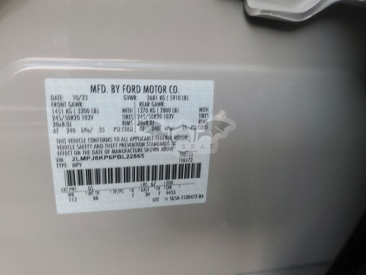 • VIN: 2LMPJ8KP6PBL22865