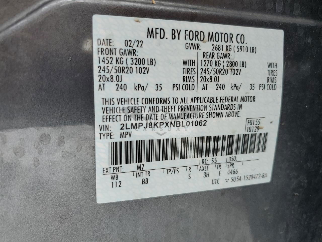 • VIN: 2LMPJ8KPXNBL01062