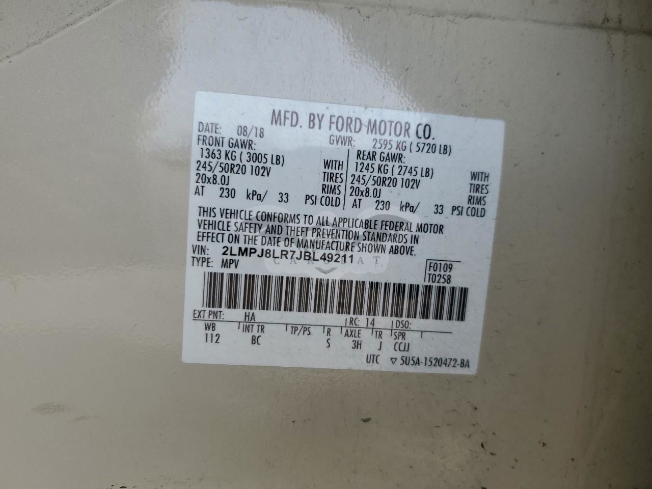 • VIN: 2LMPJ8LR7JBL49211