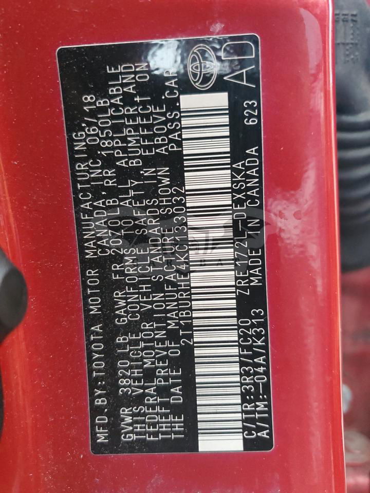 • VIN: 2T1BURHE4KC133032