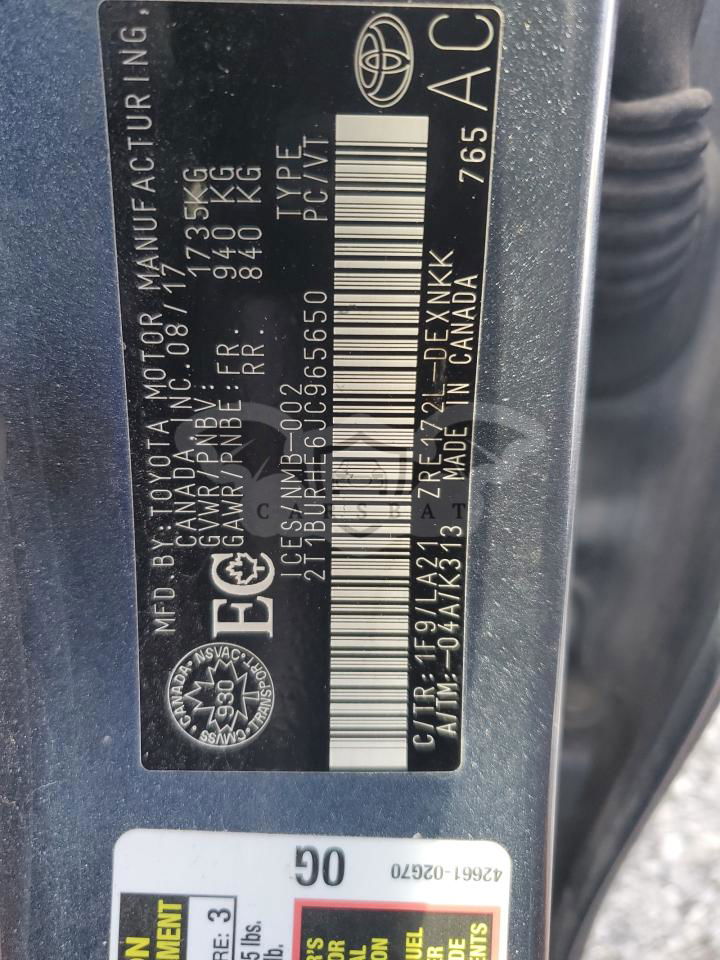 • VIN: 2T1BURHE6JC965650