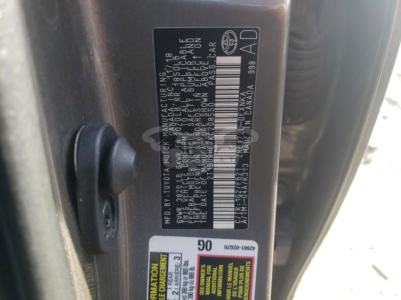• VIN: 2T1BURHE7KC208550