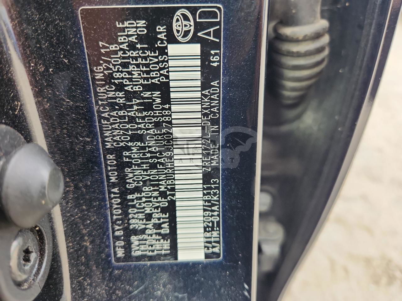 • VIN: 2T1BURHE9JC027884