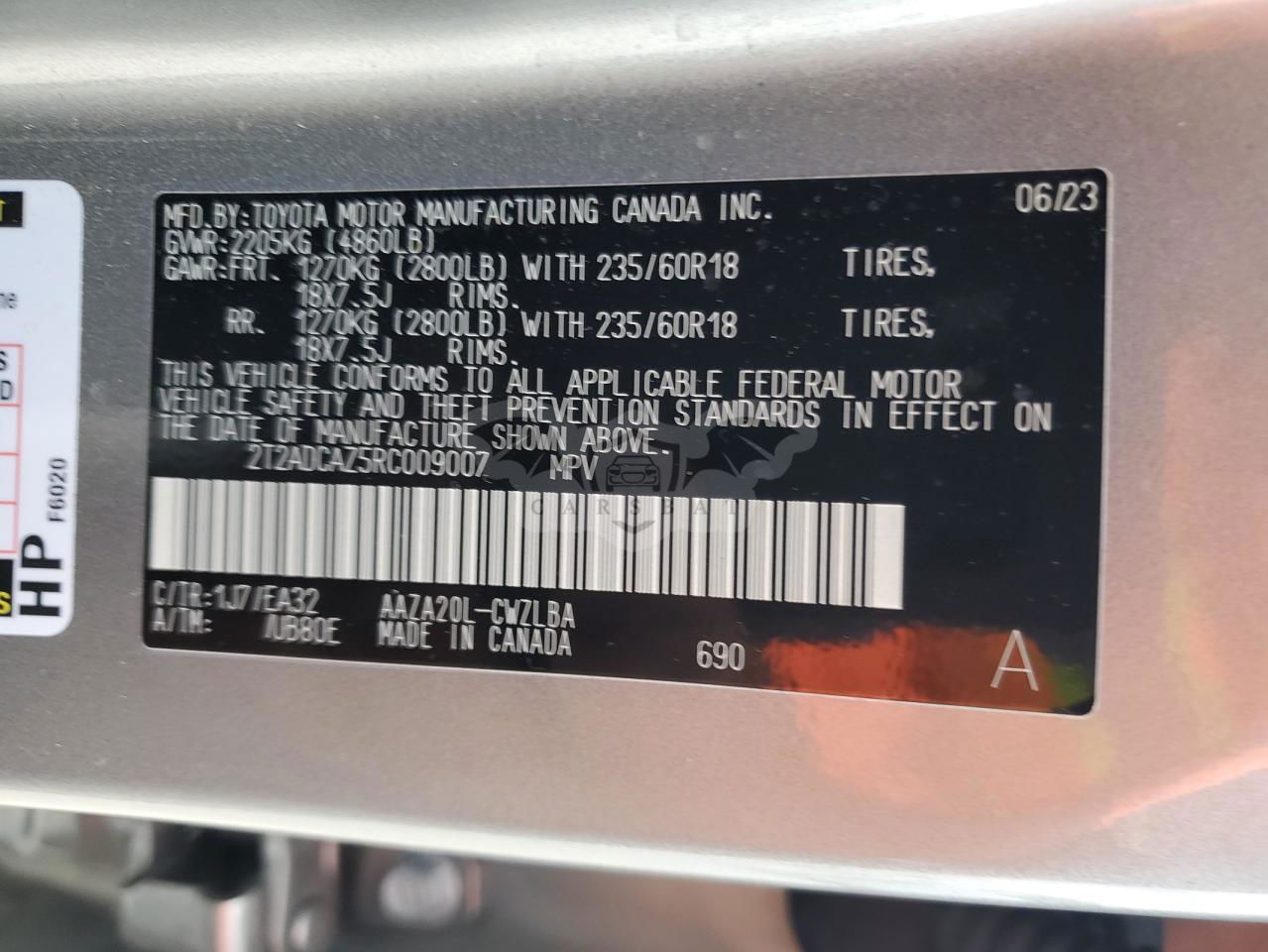 • VIN: 2T2ADCAZ5RC009007