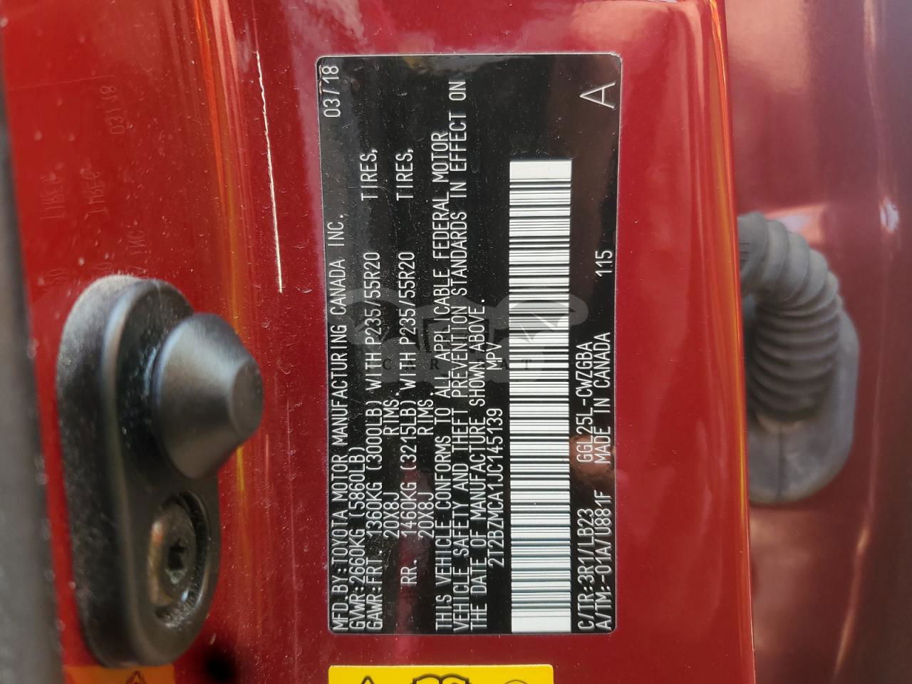 • VIN: 2T2BZMCA1JC145139