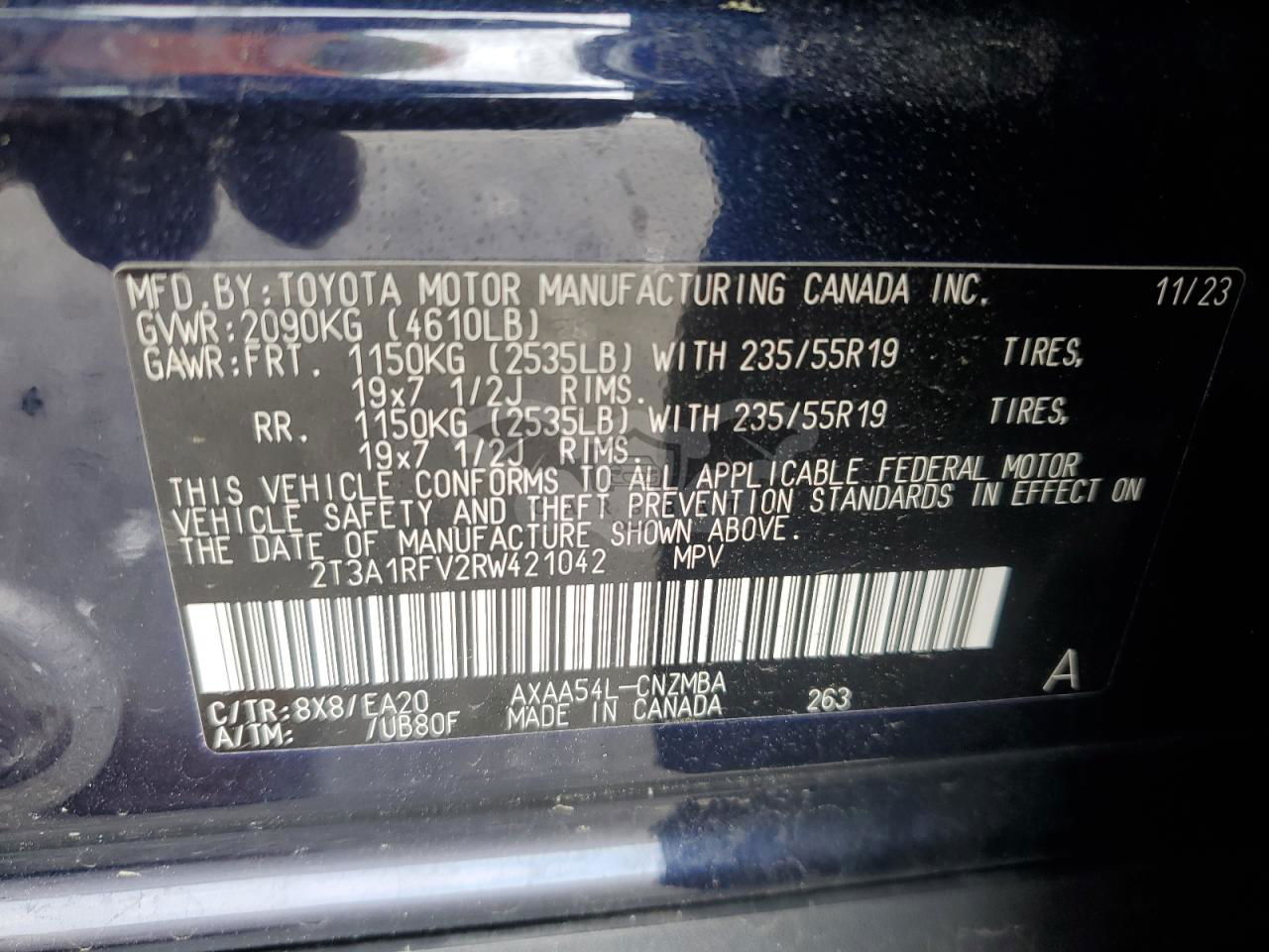 • VIN: 2T3A1RFV2RW421042