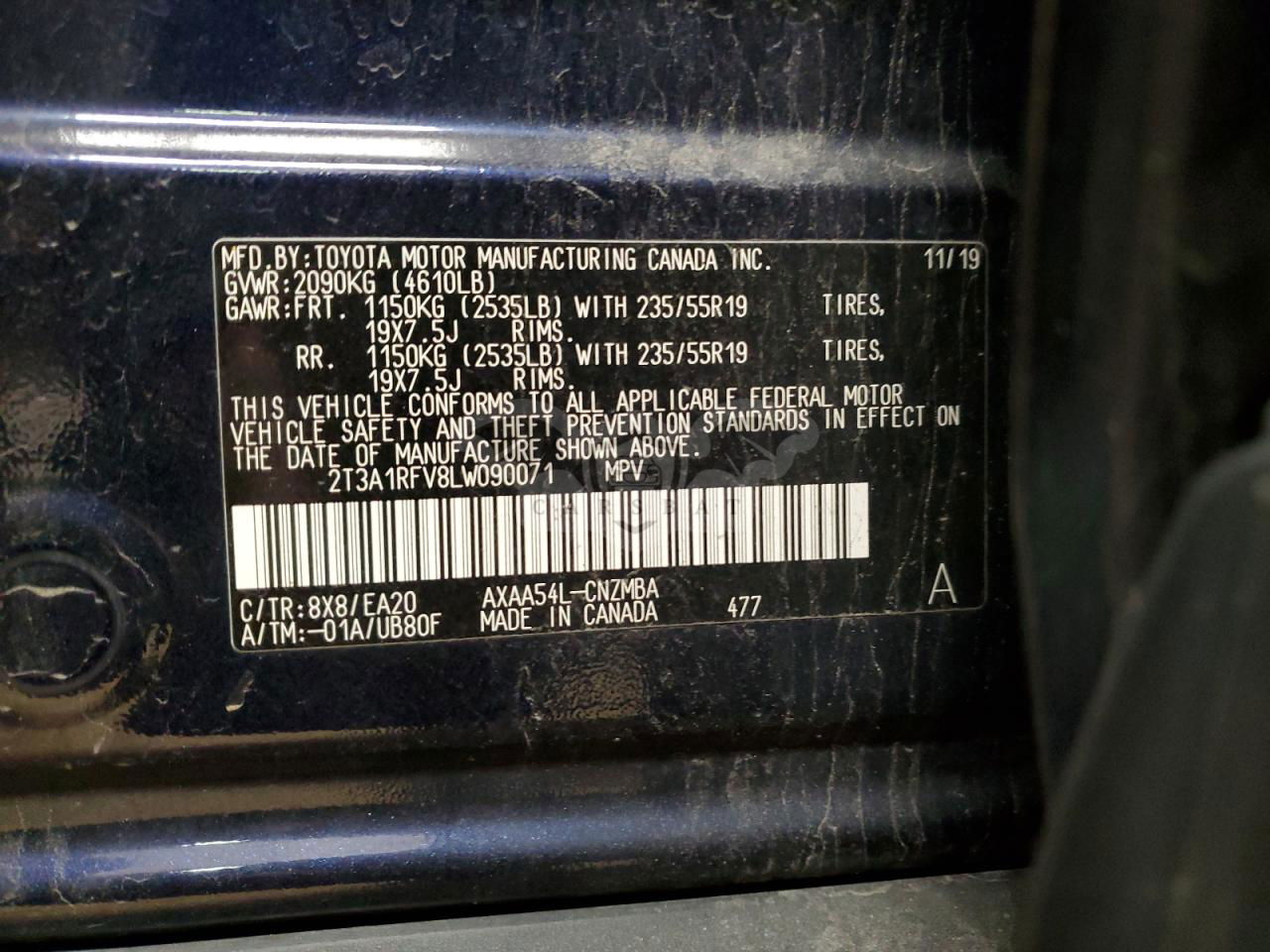 • VIN: 2T3A1RFV8LW090071