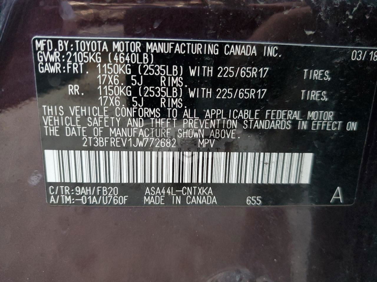 • VIN: 2T3BFREV1JW772682