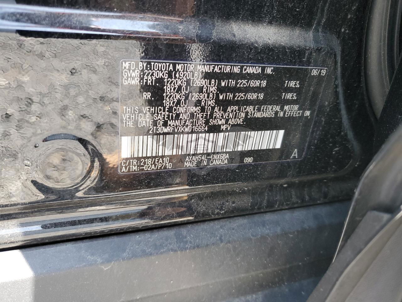 • VIN: 2T3DWRFVXKW016664