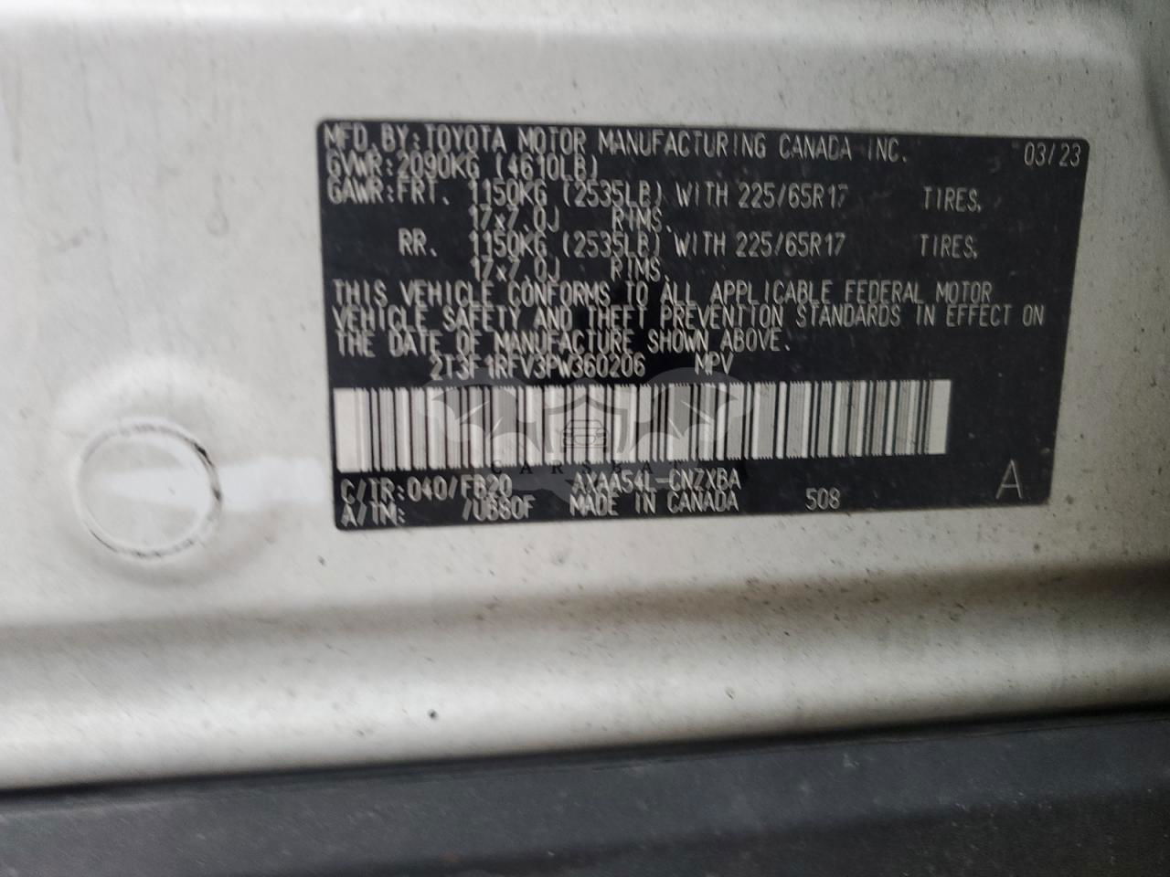 • VIN: 2T3F1RFV3PW360206
