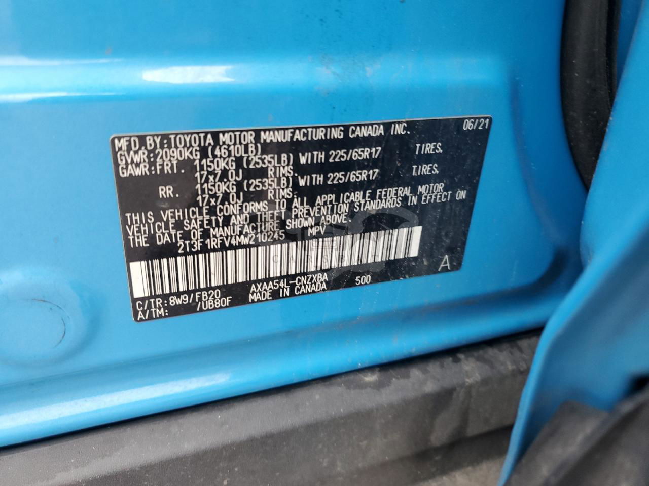 • VIN: 2T3F1RFV4MW210245