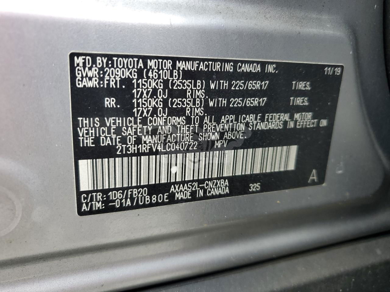 • VIN: 2T3H1RFV4LC040722