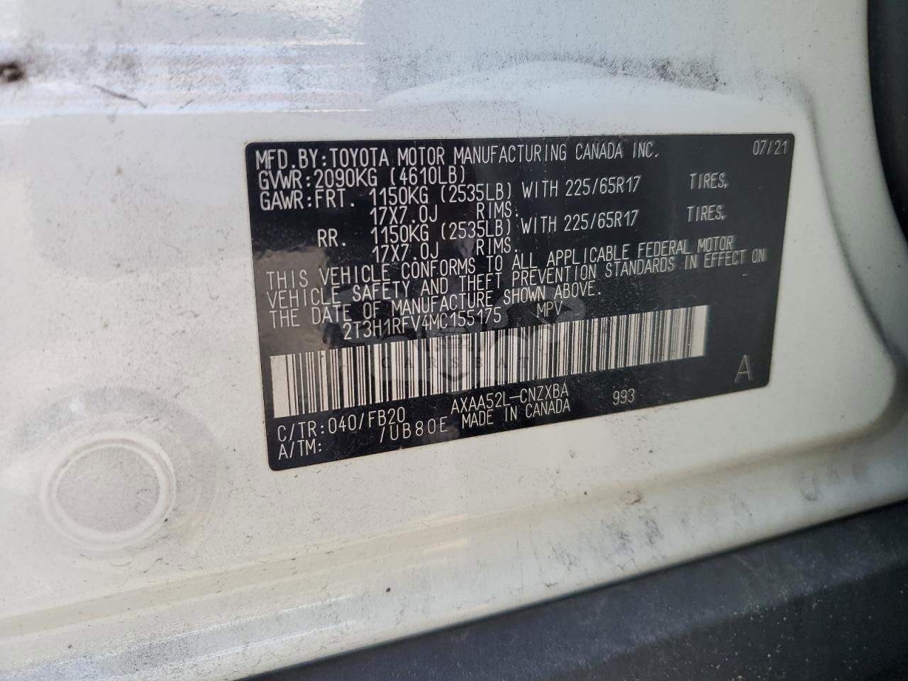 • VIN: 2T3H1RFV4MC155175