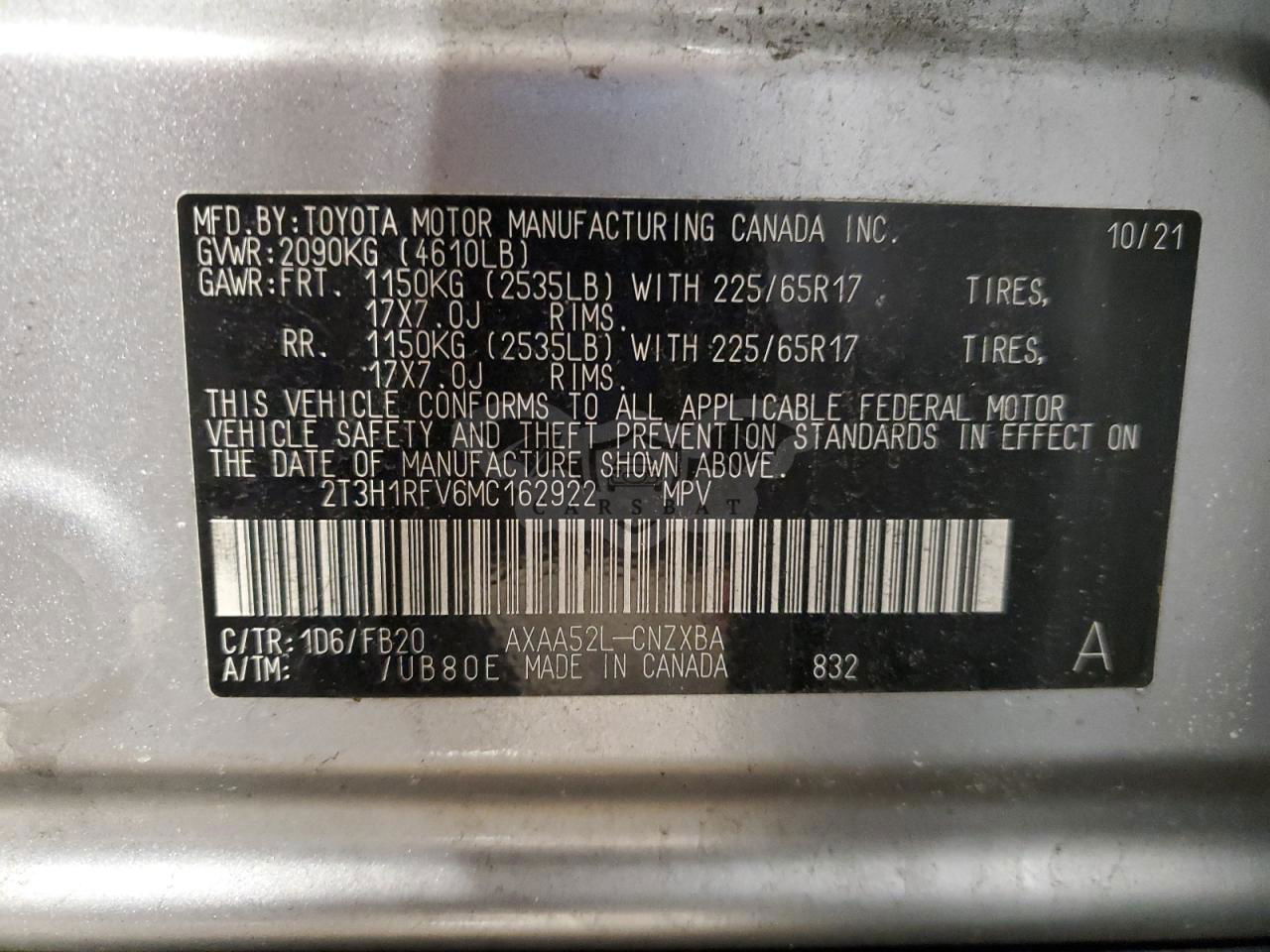 • VIN: 2T3H1RFV6MC162922