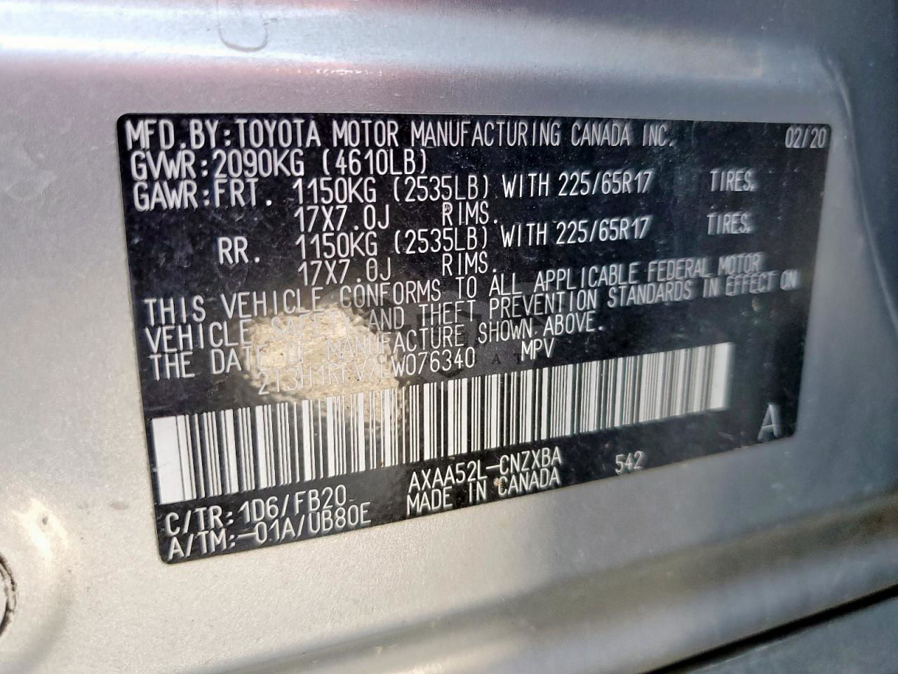 • VIN: 2T3H1RFV7LW076340