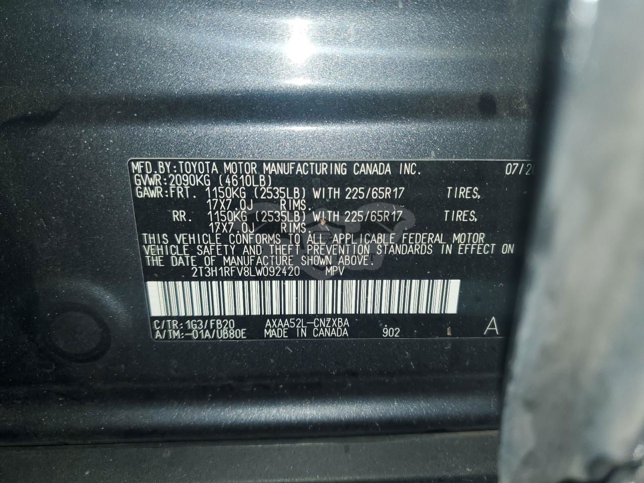 • VIN: 2T3H1RFV8LW092420
