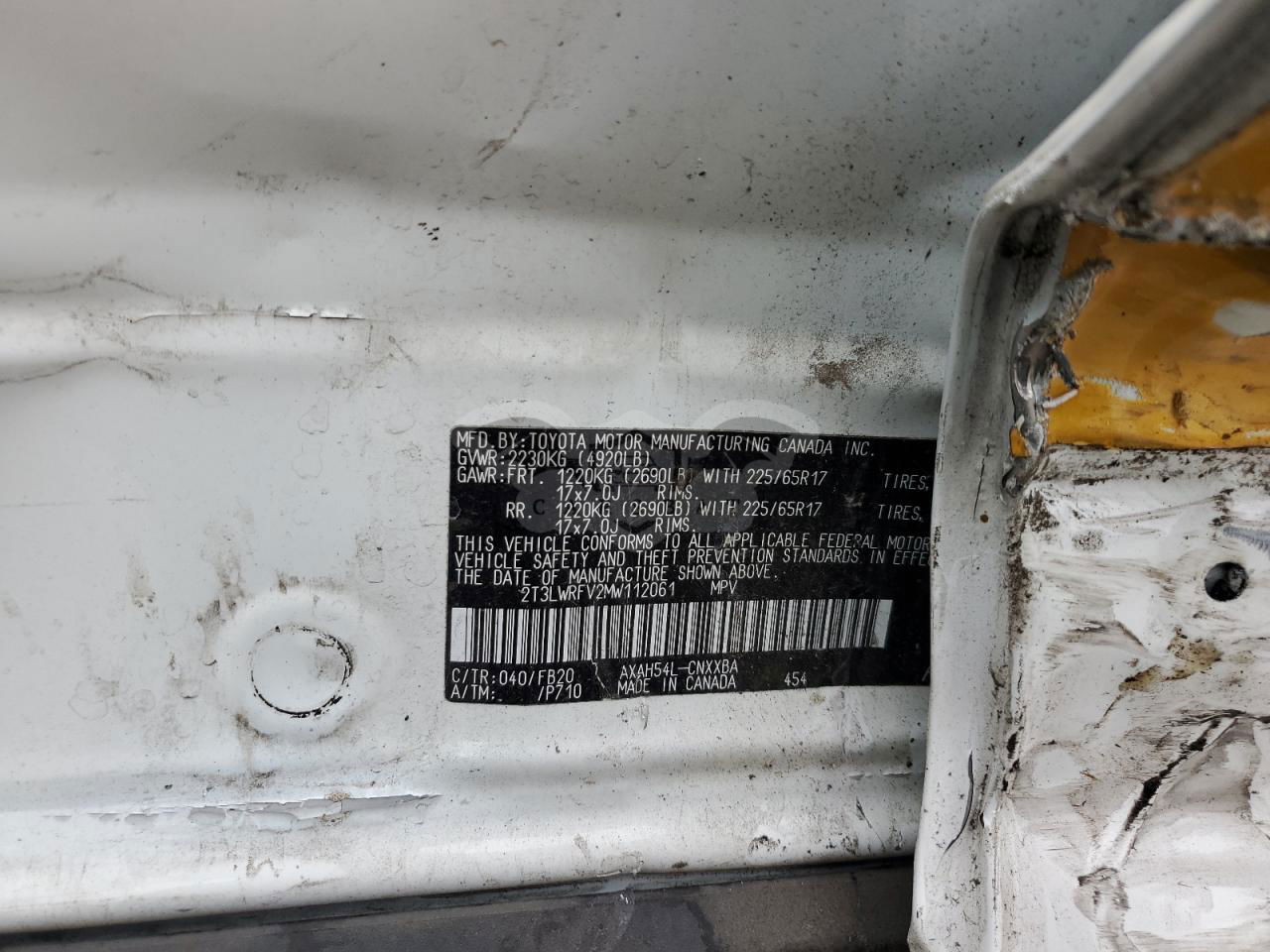 • VIN: 2T3LWRFV2MW112061