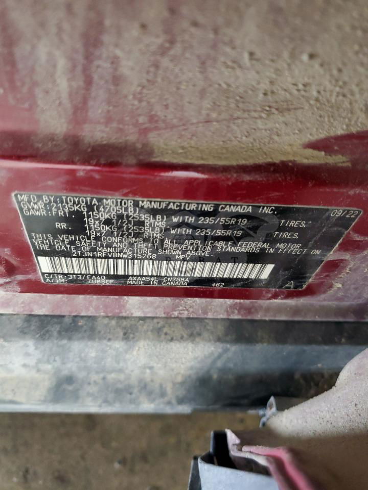 • VIN: 2T3N1RFV8NW315268