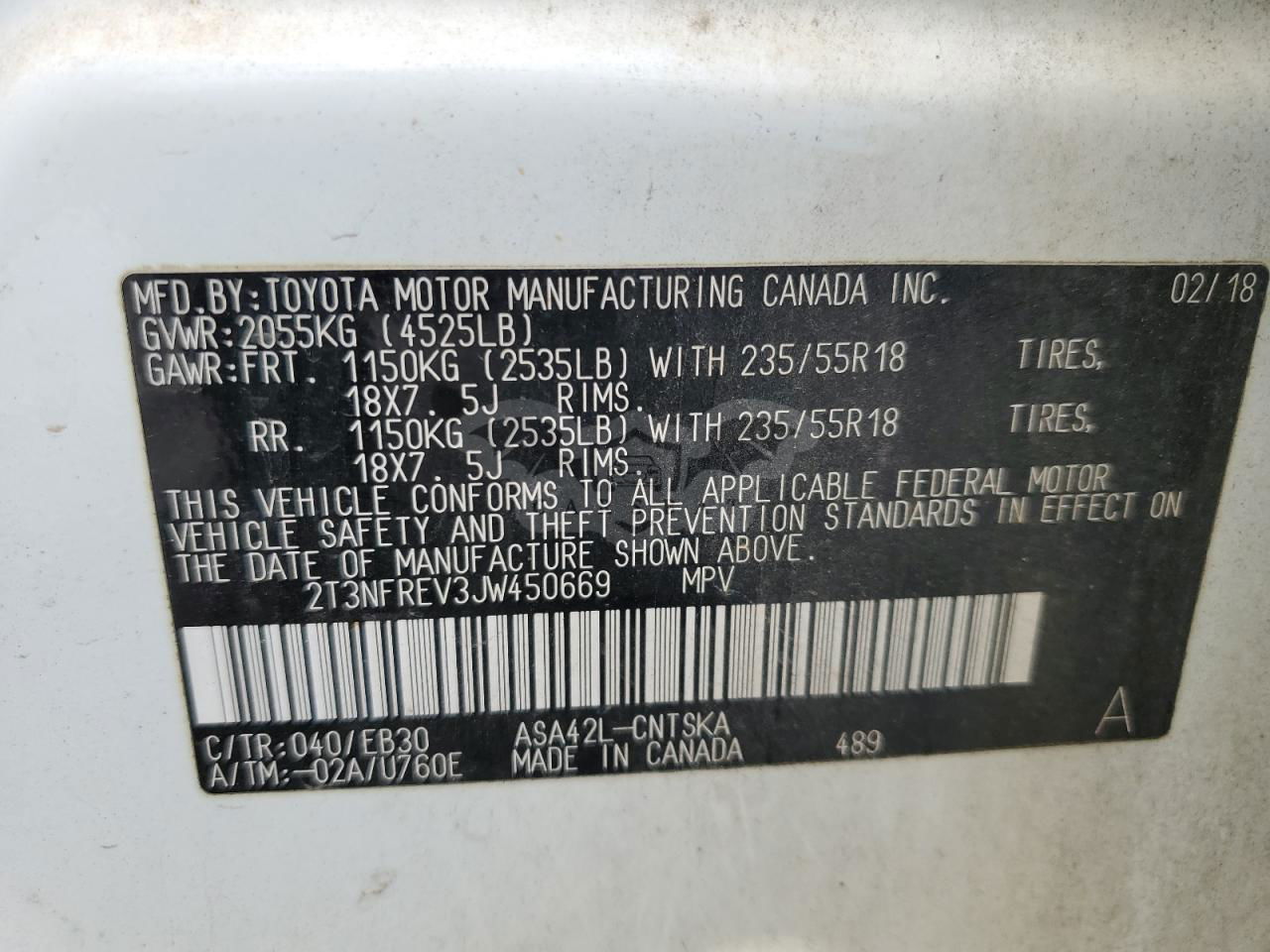 • VIN: 2T3NFREV3JW450669
