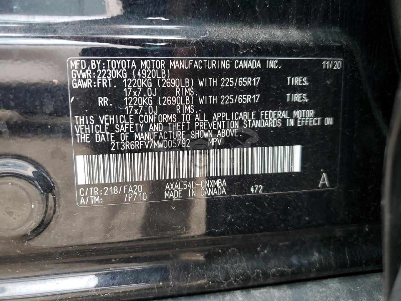• VIN: 2T3R6RFV7MW005792