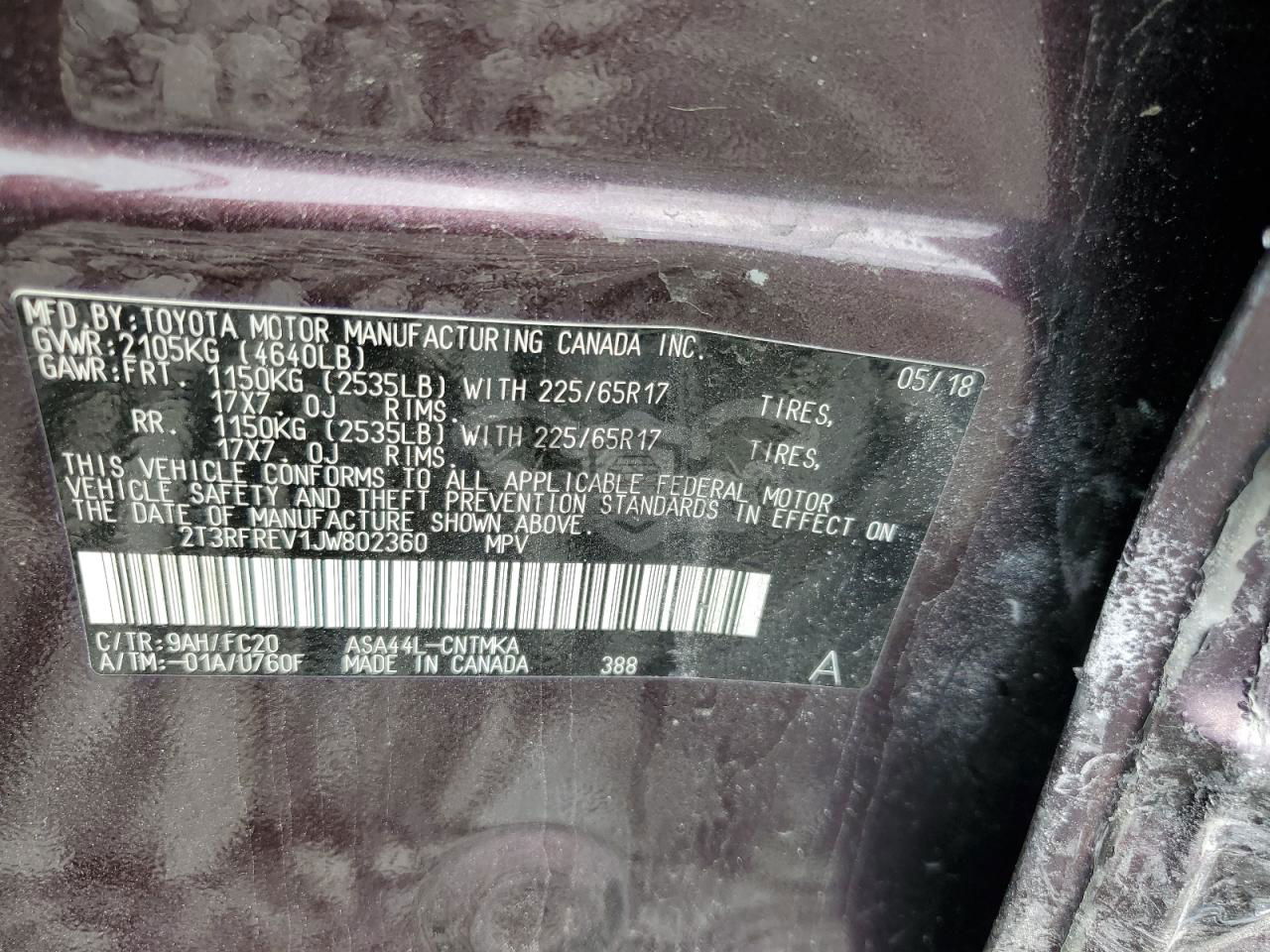 • VIN: 2T3RFREV1JW802360