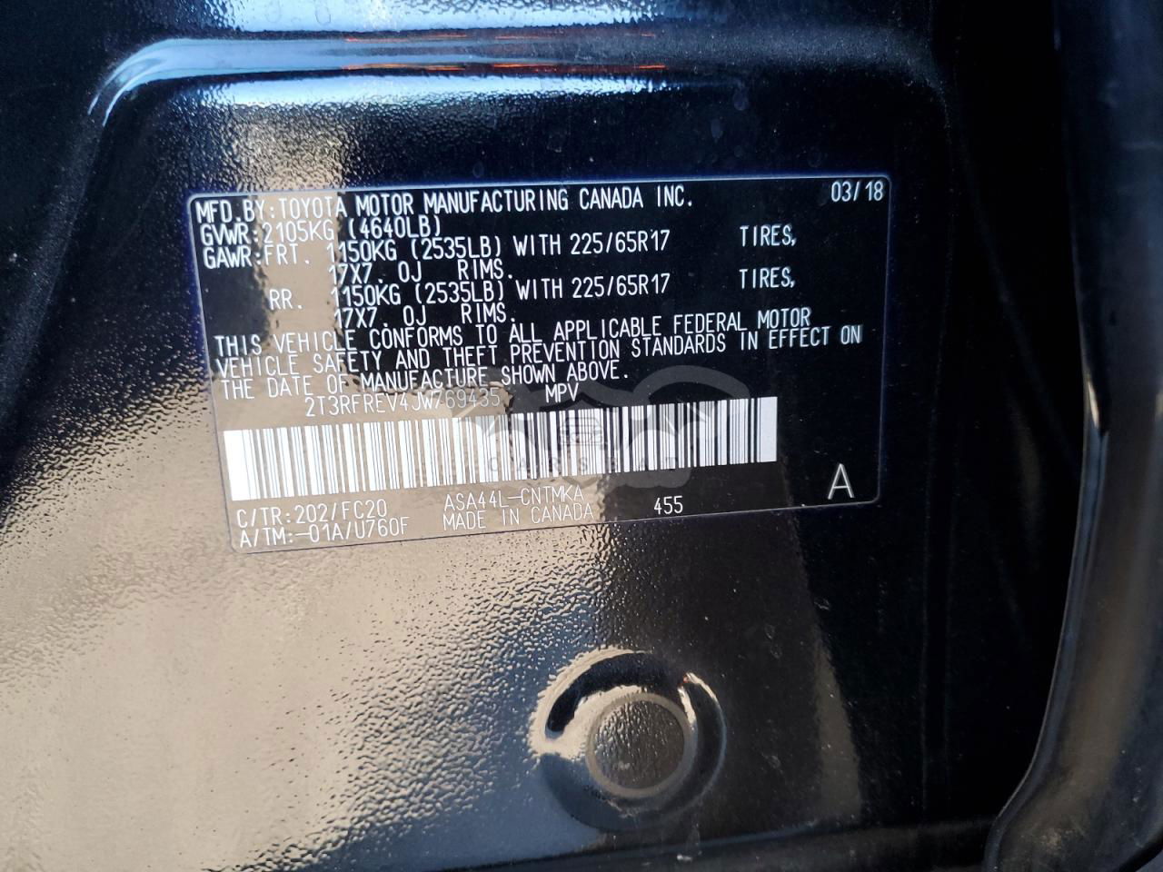 • VIN: 2T3RFREV4JW769435