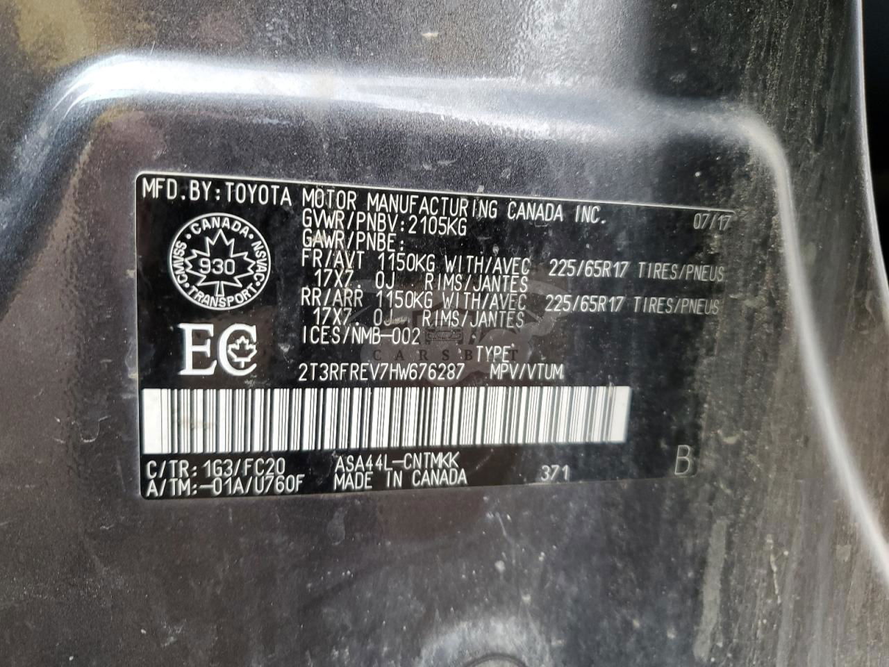 • VIN: 2T3RFREV7HW676287