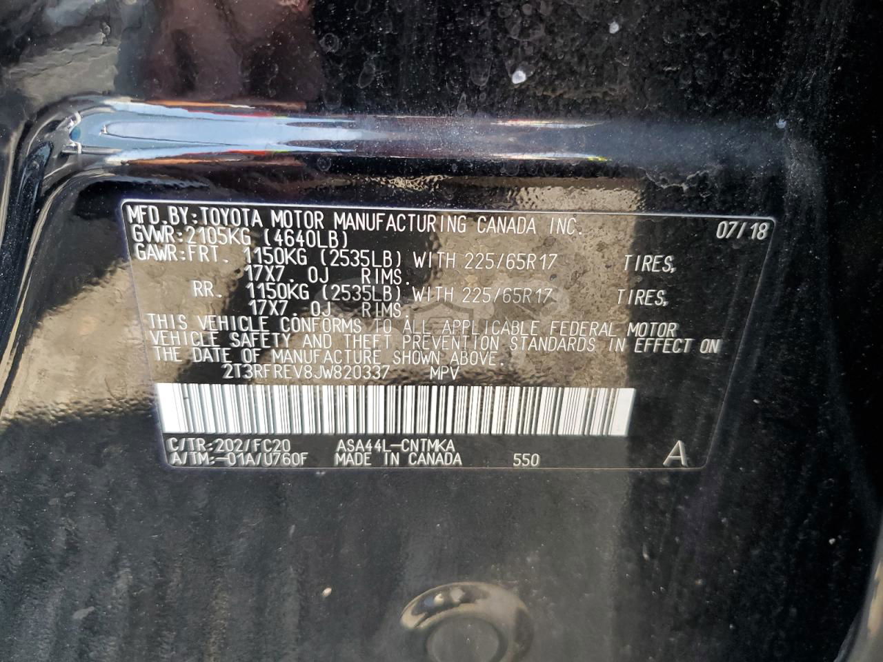 • VIN: 2T3RFREV8JW820337