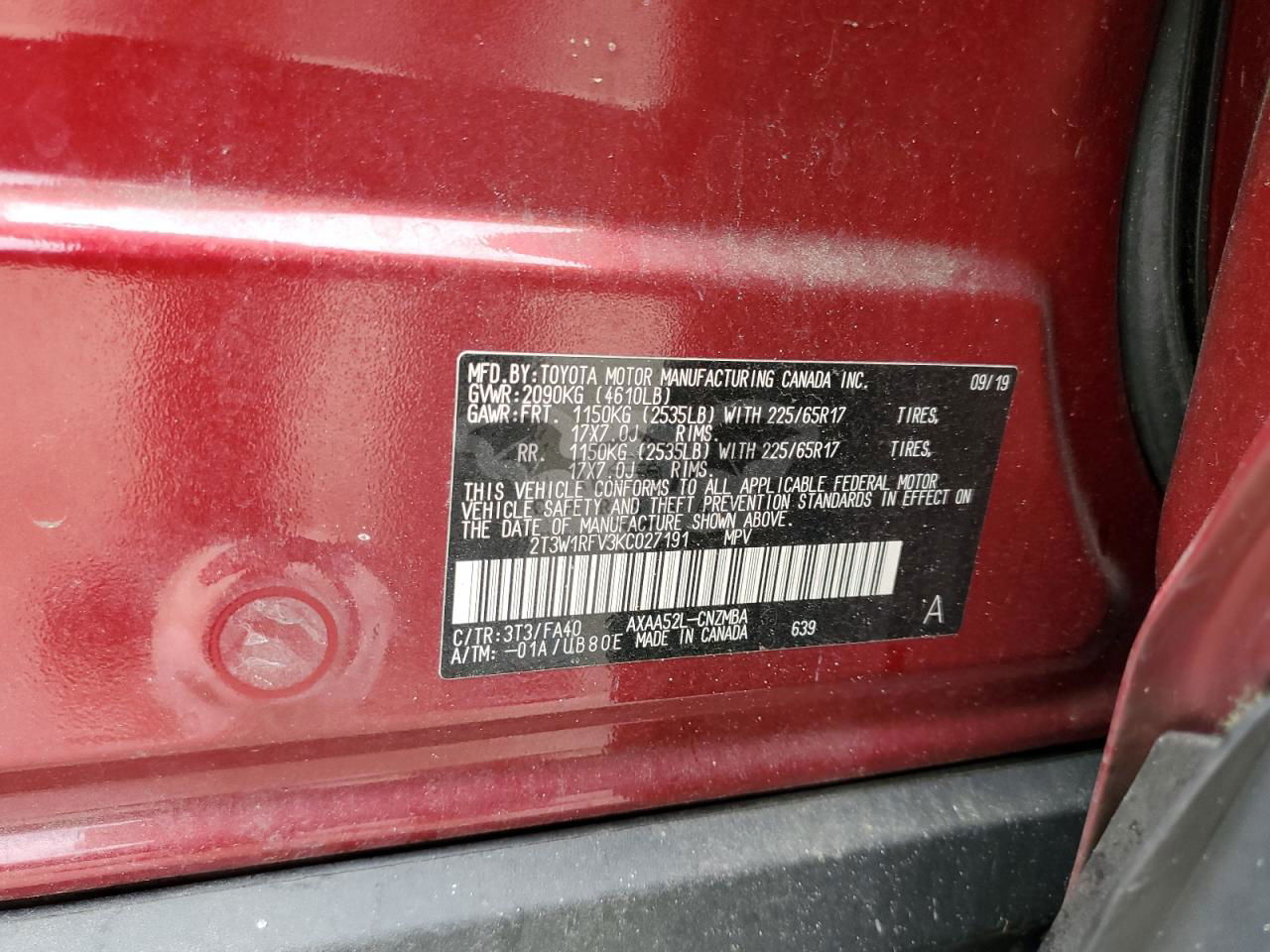 • VIN: 2T3W1RFV3KC027191