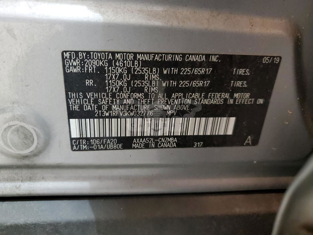 • VIN: 2T3W1RFV3KW032776